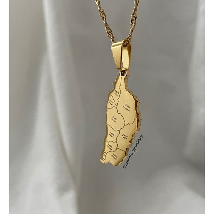 The shape of Dominica on the map, crafted beautifully from stainless steel and plated in 18ct Gold.